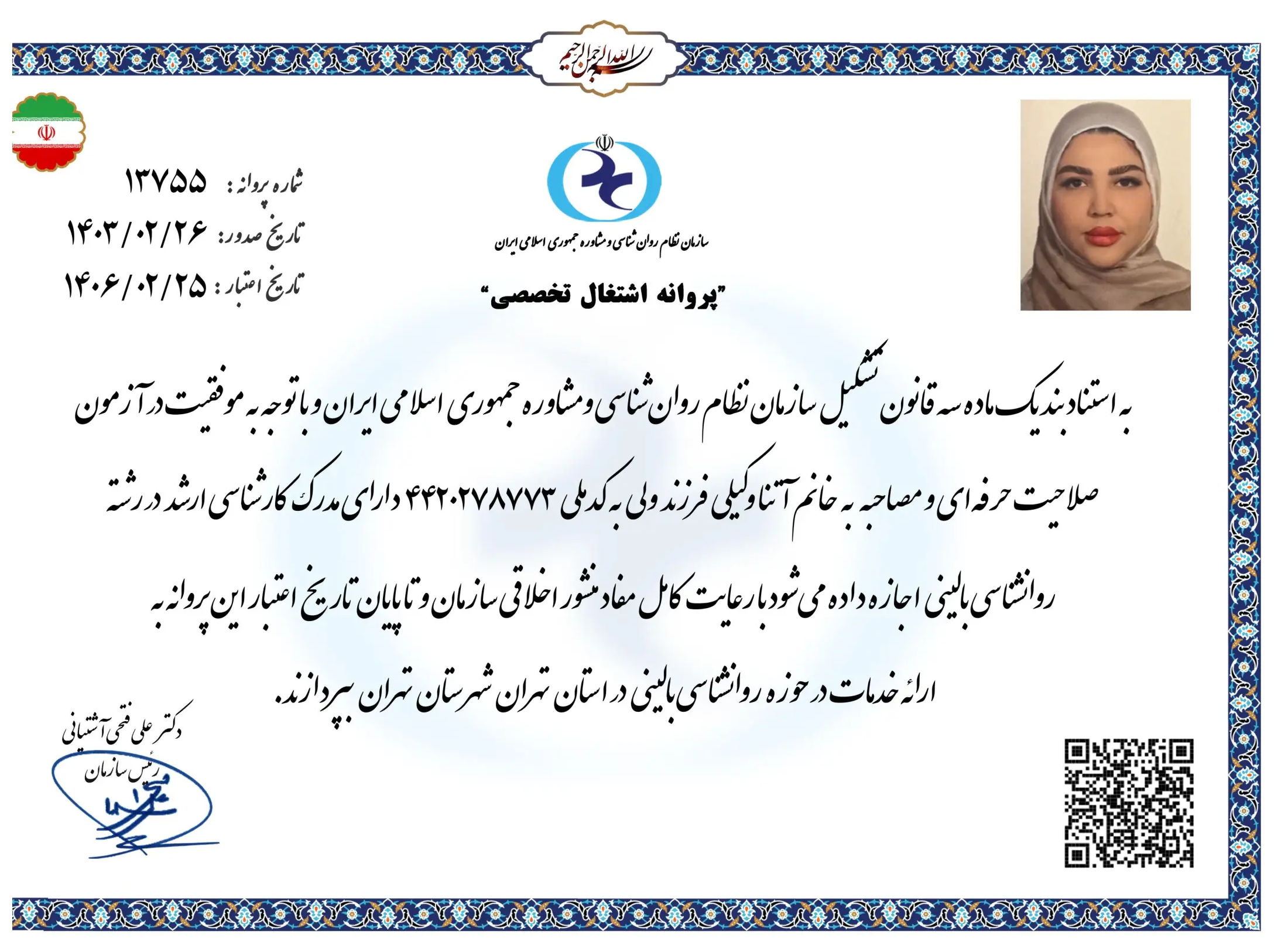 من، آتنا وکیلی، روانشناس بالینی و کاندیدای دکتری روانشناسی سلامت هستم و بیش از ۲۵,۰۰۰ ساعت تجربه در اتاق درمان دارم.